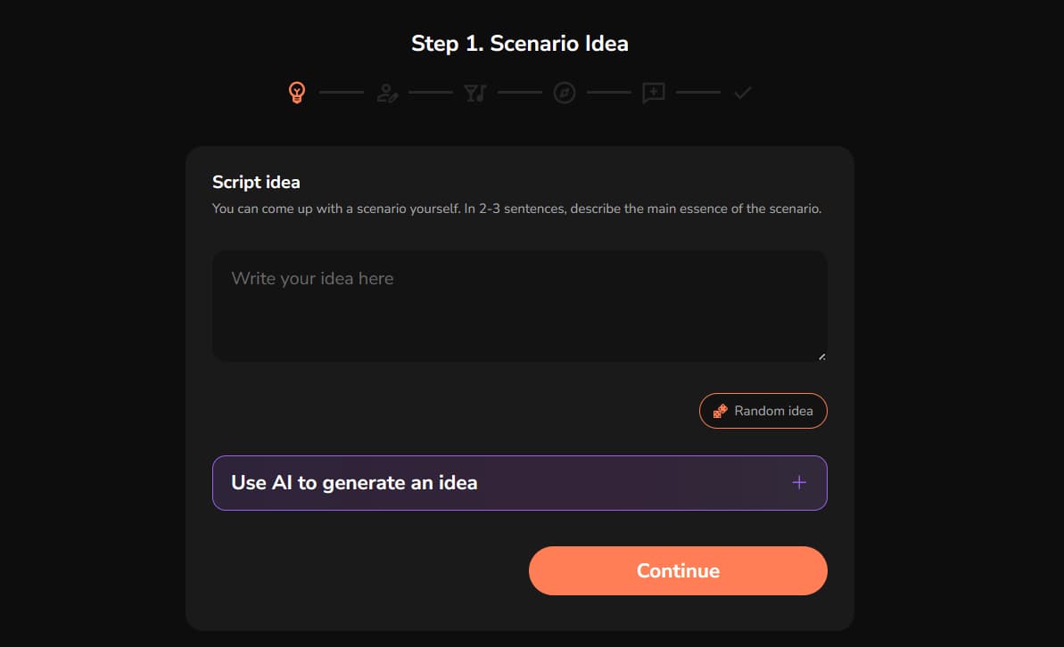 Getting started is simple: just visit the website. No signup is required for basic use. You can immediately select from a wide variety of ready-made scenarios. Each scenario includes a starting point, backstory, and characters with distinct personalities and traits.