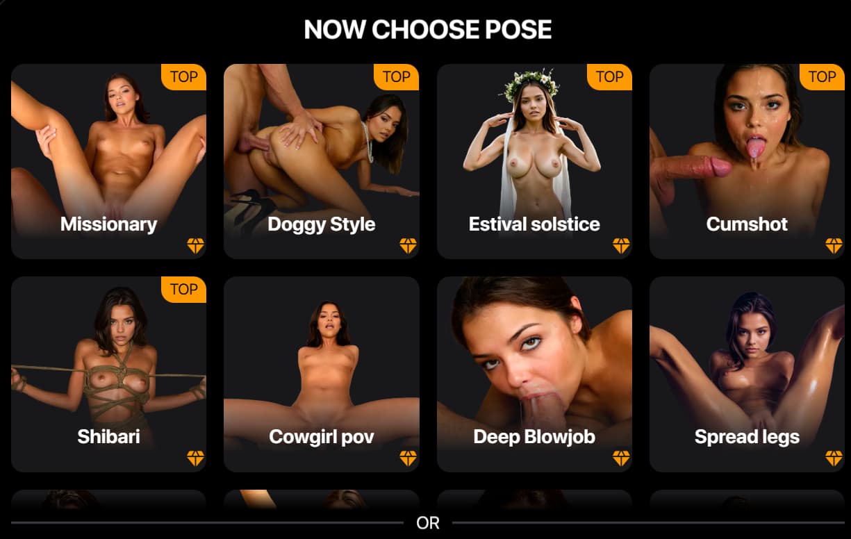 The platform offers a selection of sex poses that can be applied to the generated images. Options like Ahegao, Cumshot, and Missionary add a unique twist to the creations, making them more appealing to users looking for specific adult content.