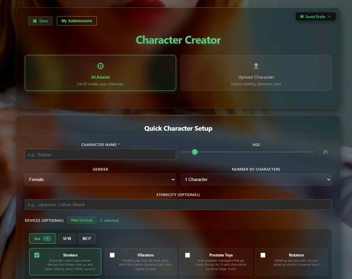 Users pick public community adapters or build custom ones. There are two main modes: Scene Interpreter, where the AI reads roleplay actions and picks patterns automatically without "knowing" about toys, and Direct Control for manual commands. This makes the AI stroke, vibrate, thrust, squeeze, or rotate in sync with the chat, matching the described sex act.