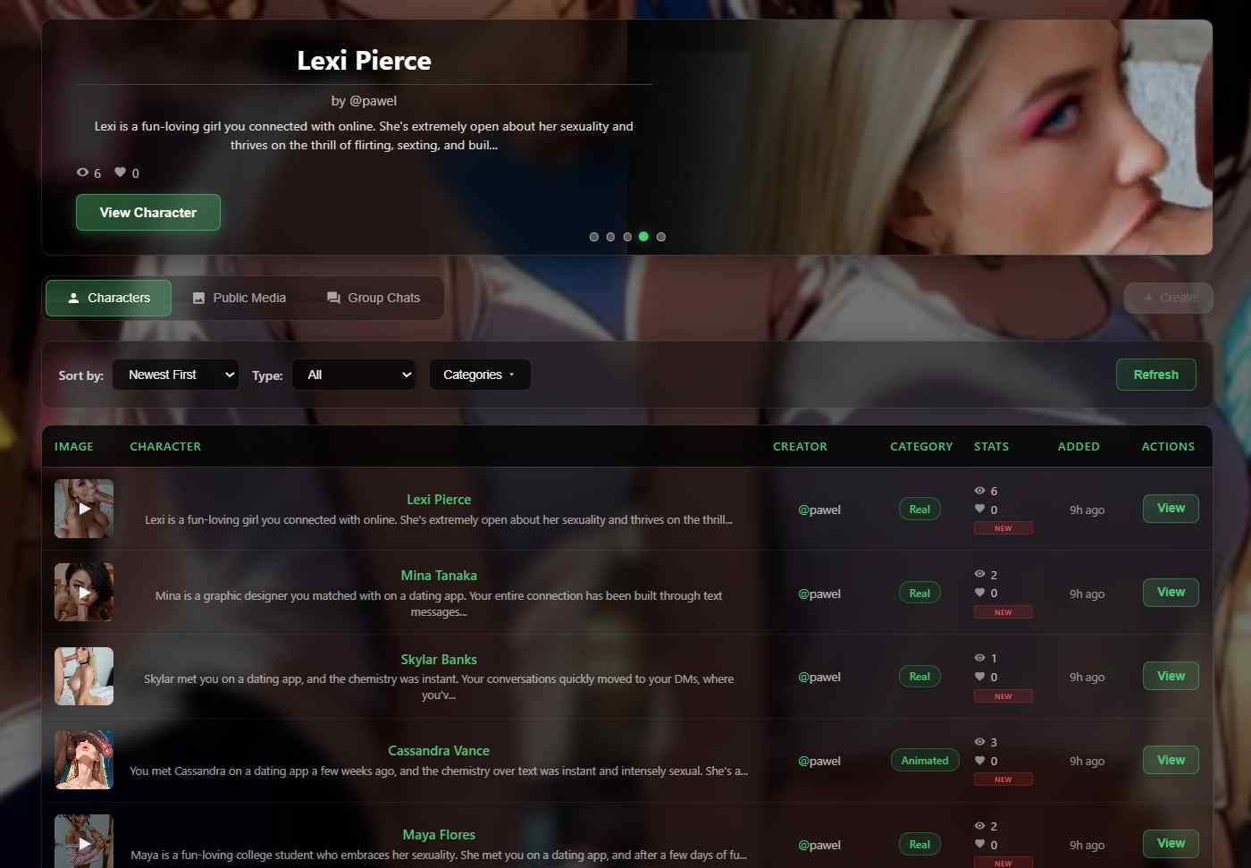 There is a voice chat feature too that uses ultra-realistic audio powered by ElevenLabs. You get high-quality text-to-speech or custom voices made from the character's image. Each voice has its own tone, accent, and personality, like a seductive whisper or dominant growl.
